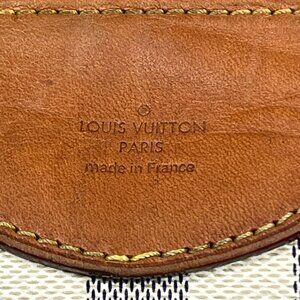 The exterior is crafted from a combination of canvas and leather, showcasing the iconic Louis Vuitton Damier Azur pattern with gold-plated hardware accents. The interior is lined with canvas and includes inner pockets for organization, making it a practical yet fashionable choice for everyday use. Made in France, this designer bag exudes elegance and sophistication.