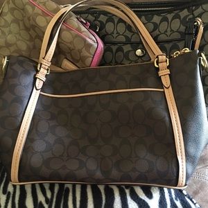 ❌SOLD❌ Great shape.. Clean inside only one small mark barley noticeable.. Clean outside a few marks on tan trim underneath not noticeable.. Straps are in great shape...I love this purse not to big not to small just perfect.. Measurements are 10 inches up and down and about 15 inches side to side.. Cheaper on Ⓜ️ercari