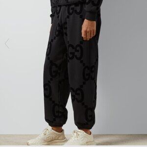 Authentic Gucci GG Flock Print Black Cotton Fleece Sweatpants XL – MSRP is $1,800 on Gucci.com