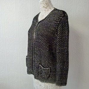 SOLD BOSS womans sweater black white fringe textured xl G21