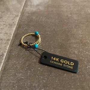 BRAND NEW 14K YELLOW GOLD RING GENUINE STONE TURQUOISE, RESIZABLE