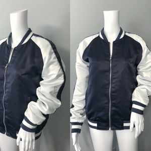 🚫 SOLD 🚫 Bagatelle Navy and White Bomber Zip-up Jacket SZ L