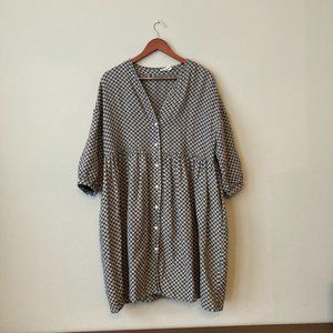 ❌SOLD❌ Beaton Linen Button Up Long Sleeve Dress in Checkered Print, size S