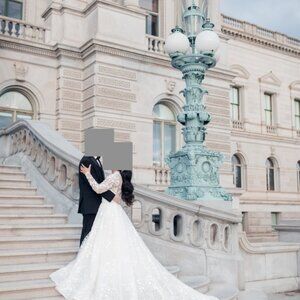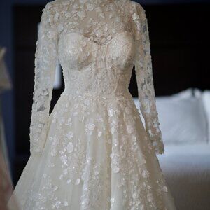 Selling my gorgeous Martina Liana wedding dress, style #1517, in the elegant color ivory. This stunning dress was worn only once for my church ceremony and is in excellent condition. It has been professionally cleaned and preserved (at additional cost), ready for the next bride to wear on her special day.