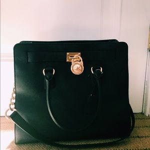 Beautiful black Michael KORS cross body tote. I purchased it in December and have not used it very much ( 2 times only.) . This is a great deal for an amazing bag😍