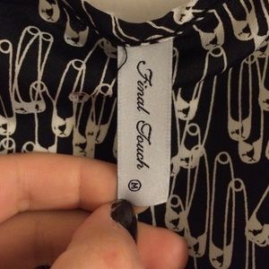 Never worn, brand new! Size medium. Different design with safety pins all over it. The shirt has fake buttons going down it. Super cute! All offers are welcomed:)