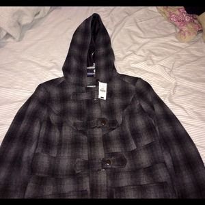Wet seal toggle closure hooded coat! Beautiful charcoal and gray coat! Beautiful silver buttons in front pockets and wrists. Brand new never used!
