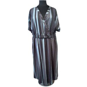 SOLD - BloomChic Striped Dolman Sleeve Pocket Shirred Flutter Wrap Dress NWT