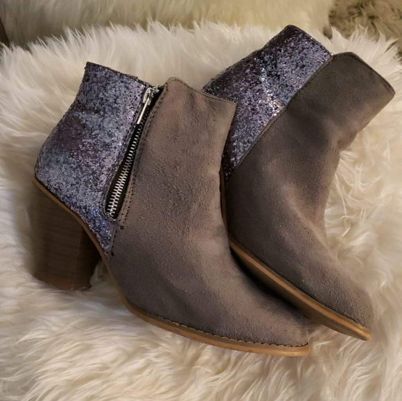 Suede Grey w/ Silver Glitter Zipper Detail Booties.