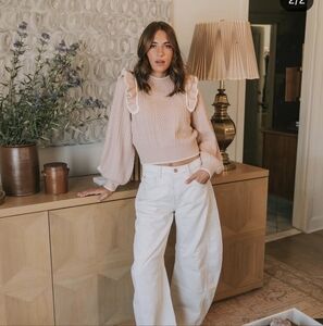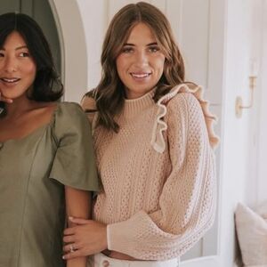 The "Not Quite Blushing" sweater from the super cute boutique, One Loved Babe. Slight balloon sleeve and ruffle details. In excellent, like new condition! Fits TTS.