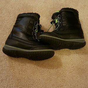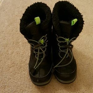 ***Sold*** Totes boy's size 12 winter boots black with green. Little starch/ marks on toes, sole shows little to no wear which is shown in picture. Smoke free home.