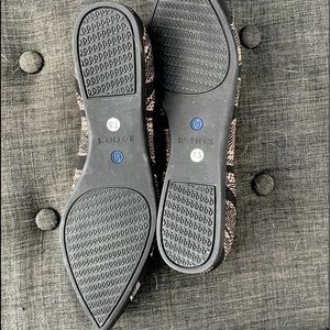 Never taken off of the inserts. Never worn. Perfect condition. They make an excellent neutral &/or look great with black and gold. Retired print/pattern.