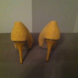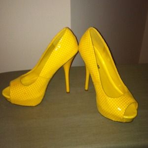 Yellow 5 1/2 inch heels with 1 inch covered platform. Brand new, never worn.