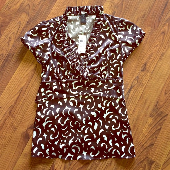 Brand New, never-been-worn, Ann Taylor Petite, Chocolate-Brown color w/Cream Color, Swirl pattern, 97% Polyester-3% Spandex, still has original tag. Perfect condition, Tie-back