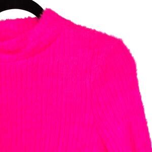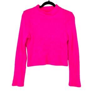By Anthropologie Cropped Hot Pink Sweater Womens Sz Medium Fitted Mock Neck