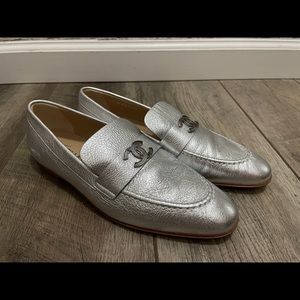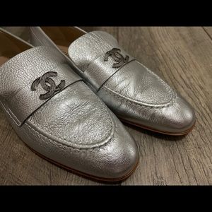 ** SOLD ** CHANEL Crackled Goatskin Loafers Silver - US 7.5