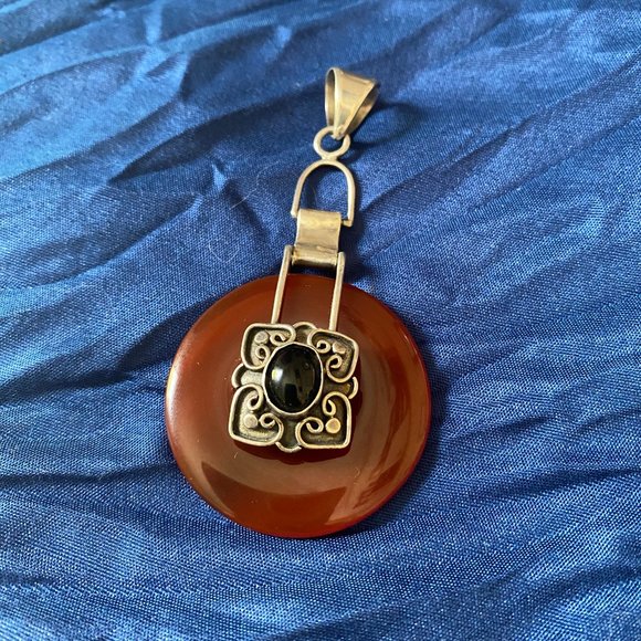 SOLD Carnelian, onyx, and sterling silver pendant necklace