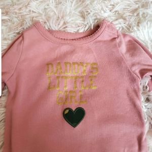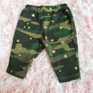 Baby girl army fatigue print leggings with gold heart pattern. Pink shirt with gold words on front. Good condition