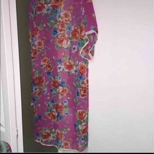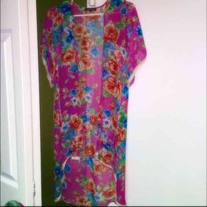 Open cardigan with floral design. Lace along the sleeves and end of cardigan. Flowy. Perfect to wear at the beach, party, or just a simple day out. In beautiful condition.