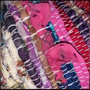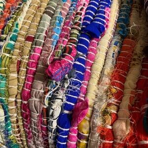 Vibrant Handmade 34” long x 19.5” wide chindi rug / rag rug. Used but in good condition.