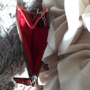 Authentic Coach Change/Card Wallet. Brown C-Pattern with Red/Orange Leather. Used once.