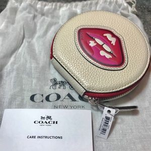 COACH 👜 • $75 MSRP 💰 • NWT + Dustbag + Box, ready to gift 🎁 • Pebbled Leather 🐄 • Punk-chic lip art appliqué 🕶 • Red and white contrasting zipper 💌 • 4" L x 3-3/4" H x 3/4" W 📏 • Open to reasonable offers 🎟