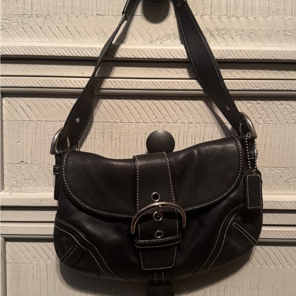 Mini black leather Y2K soho for sale -- please see pics and video. EUC: but does show some wear on the hardware.
