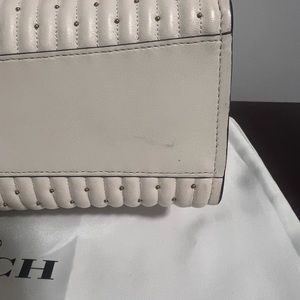 Amazing Napa leather. Only carried a few times. Bag stays stored in dust bag with stuffing for shape. Comes with matching wallet. No standard coach hangtag as I got in monogramed with Brit. Has a few marks small mark on back and bottom (photos 5,6,7). The video shows how the interior can rub during storage. overall great bag I just really don’t like chalk bags.