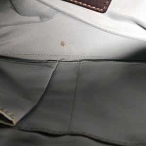 Slight rubbing on leather, makeup inside (oops) See pictures.