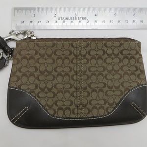Small wristlet/wallet perfect for taking the essentials. Classic Coach monogram logo print. There’s some marks on the buckle, but otherwise in very good condition. Comes from a smoke-free, pet-free home. Wristlet measures 6.25" W x 4" H. Be sure to check out my closet for other Coach wristlets! Bundle and save!