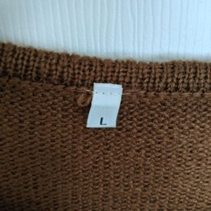 Warm neutrals color block striped sweater. Really cozy but I don't reach for it often. Brand and materials unknown but it's definitely not wool because I am allergic. Most likely acrylic. Happy to answer any questions or add photos/measurements.