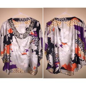 New Colorful beaded flowers scoop neck flowy shirt. Never worn before. It comes in a size XL.