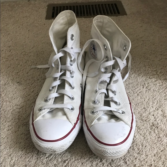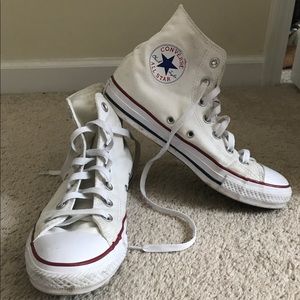 Like new Converse Hightops, only wore it twice because it is too big for me. It is a Men's 6 so it's a women's 8 and still runs a bit big. Willing to trade for Vans (preferably sk8 highs)