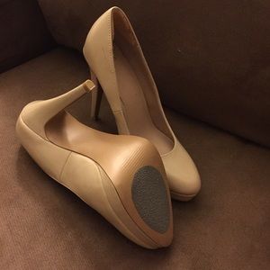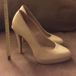 4" cream heels from Elle, size 7. Only worn a couple of times, soles look new. Extra grip pads on the soles. Comfy heel pads inside the shoes (they were a little big on me).