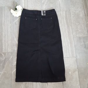 Beautiful long black jean skirt with both front and back pockets!! Tummy control. Mid rise. 💥💥SOLD💥💥