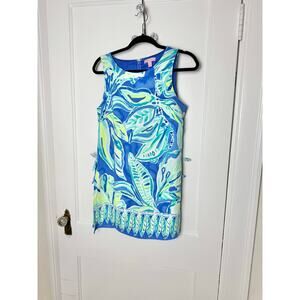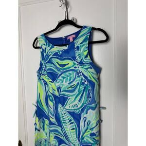 Blue and green beachy floral palm print. Print is called Palm Passages