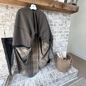 Zip the liner in for added warmth or remove to display the ever so elegant and timeless Novacheck print. See image two for jacket with liner zipped in. Image 3 shows the amazing yardage of gorgeous Novacheck that hides underneath liner. Main image shows the jacket with the liner fully removed.