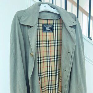 Burberry SUPER RARE Hard to Find 70's Vintage Trench Coat Novacheck 42L Olive Sage Grey Removable Liner