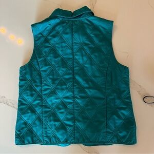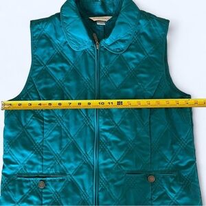 Bundle includes two women's medium vests — a bold Snowshoe Mountain red vest by Double Diamond and a stylish teal quilted vest by Christopher & Banks.