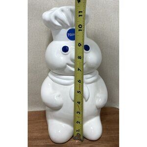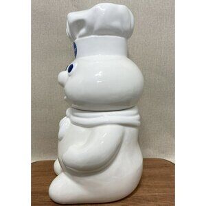 This vintage 1988 Pillsbury Doughboy Poppin' Fresh Cookie Jar is a 12-inch chubby chunky features a retro style.