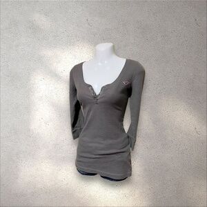 !! SOLD DO NOT BUY !! Early 2000s Hollister Co. Grey Henley 3/4 Sleeves Top