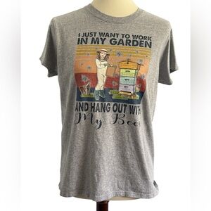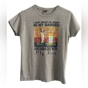 Gildan Gray Garden and Bees Graphic Women's Short Sleeve T Shirt Size Medium
