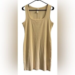 H&M Light Yellow Square Neckline Ribbed Sleeveless Above Knee Midi Dress Size L