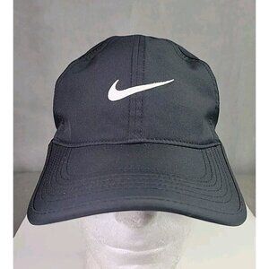 Nike Featherlight Running Dri Fit Hat Cap Adult Size OSFM black white swoosh
