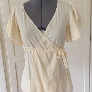 *SOLD** Beautiful silk and cotton cream wrap top. I bought his from another posher but sadly it doesn't fit me. This top is so beautiful and in great condition. I did hand wash some spots that were in it when I got it, but they came out completely and it looks perfect now. I so wish this fit me, but maybe you can give it a great home!