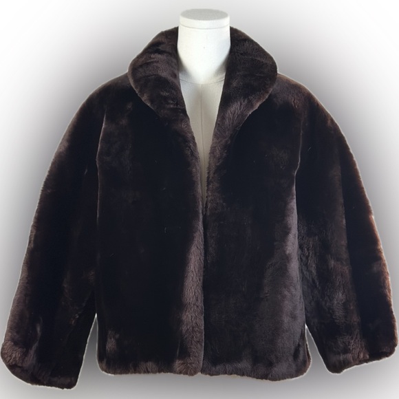 Beautiful, plush dark brown sheared fur coat. Modern cropped silhouette. Perfect for a chic and cozy look. No found imperfections.