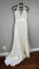 This simple yet stunning gown has an allover lace beaded detail with a sash at the waist and a trumpet skirt . The top features an illustion halter style. The dress is finished with a chapel train.