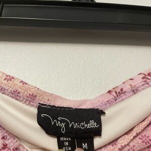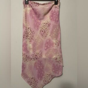 Fairy core summer skirt 🧚🏻♂️💖 pink and purple floral sort of tie dye print. It’s an asymmetrical almost handkerchief style hem.
