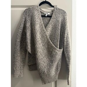 Derek Lam Gray Crossover Sweater. Featuring a stylish ribbed hem, this sweater offers both comfort and elegance. Perfect for any occasion.