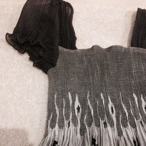 Edgy yet feminine with metallic detail along the bottom. The top is super stretchy and will fit sizes XS-M/L